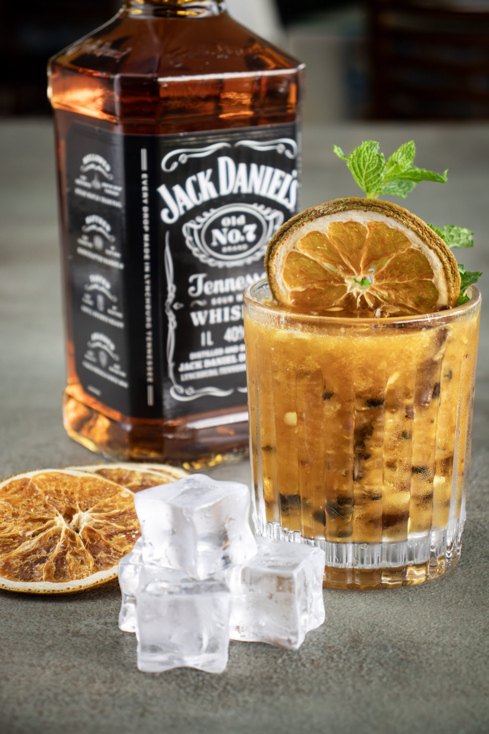 Jack Daniel’s, maracujá e rapadura em uma combinação perfeita de acidez, doçura e um toque amadeirado do clássico Tennessee Whiskey